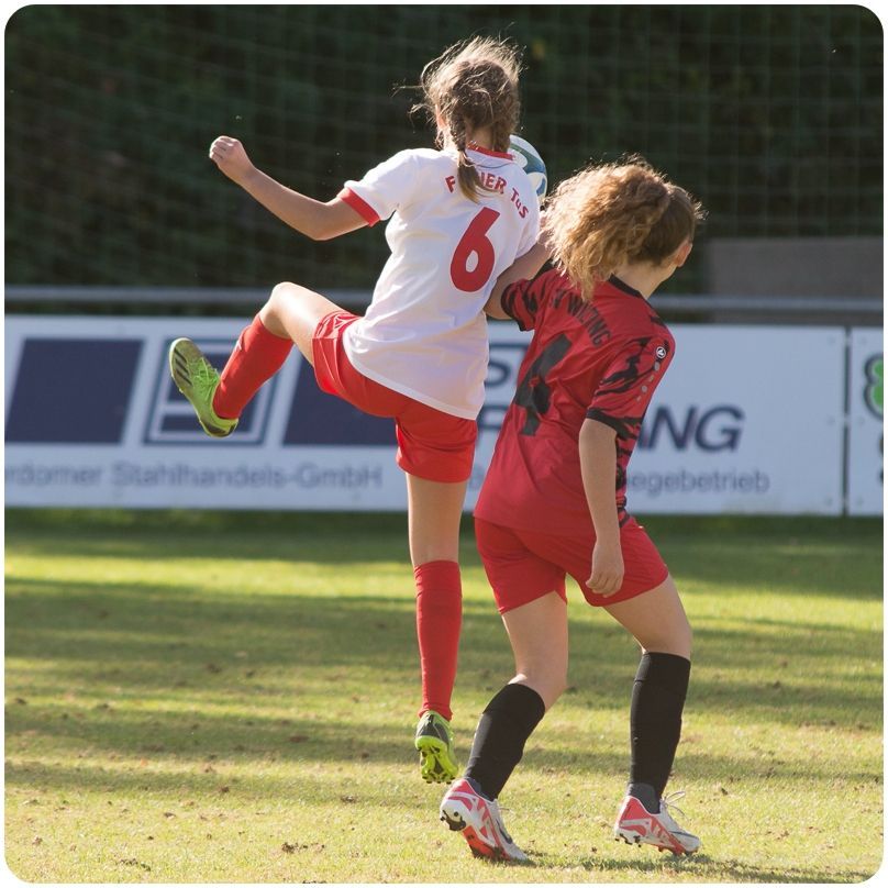 Der Anpfiff erfolgte etwas verzögert durch Schiedsrichter Luka Pinkpank, der das Spiel mit Souveränität leite-te. Der Freier TuS legte von Beginn an einen starken Druck auf das gegnerische Tor und konnte bereits nach zwei Minuten den Führungstreffer erzielen. Nach weiteren zwei Minuten erhöhten wir auf 0:2 und nach zehn Minuten Spielzeit stand es bereits 0:3 für uns. Man hatte den Eindruck, das Spiel ist schon entschieden. Diese Rechnung hatten die Mädels jedoch ohne die Rechnung vom VfB gemacht. Denn in der 11. Minute erzielten die Mädels den Anschlusstreffer zum 1:3. Dieser Treffer gab den Mädchen Sicherheit und Selbstvertrauen. Bis zur Halbzeit konnten sie tatsächlich den Rückstand ausgleichen und beide Mannschaften gingen erschöpft in die Halbzeitpause. 3:3 unentschieden, die Fußballmädchen vom VfB wussten, „da geht noch was“.
